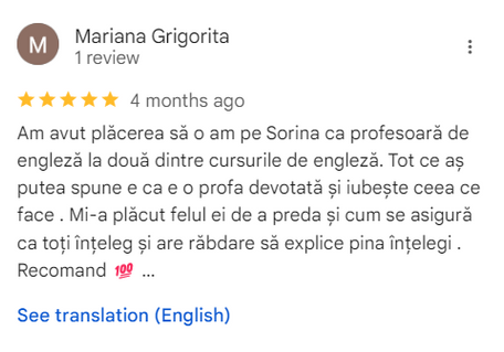 Cred că învățarea limbii engleze ar trebui să fie o experiență transformatoare, care deschide uși către noi oportunități și îți îmbogățește viața. Cu peste un deceniu de predare dedicată, am creat lecții care depășesc metodele tradiționale, concentrându-se pe medii de învățare captivante, interactive și personalizate.